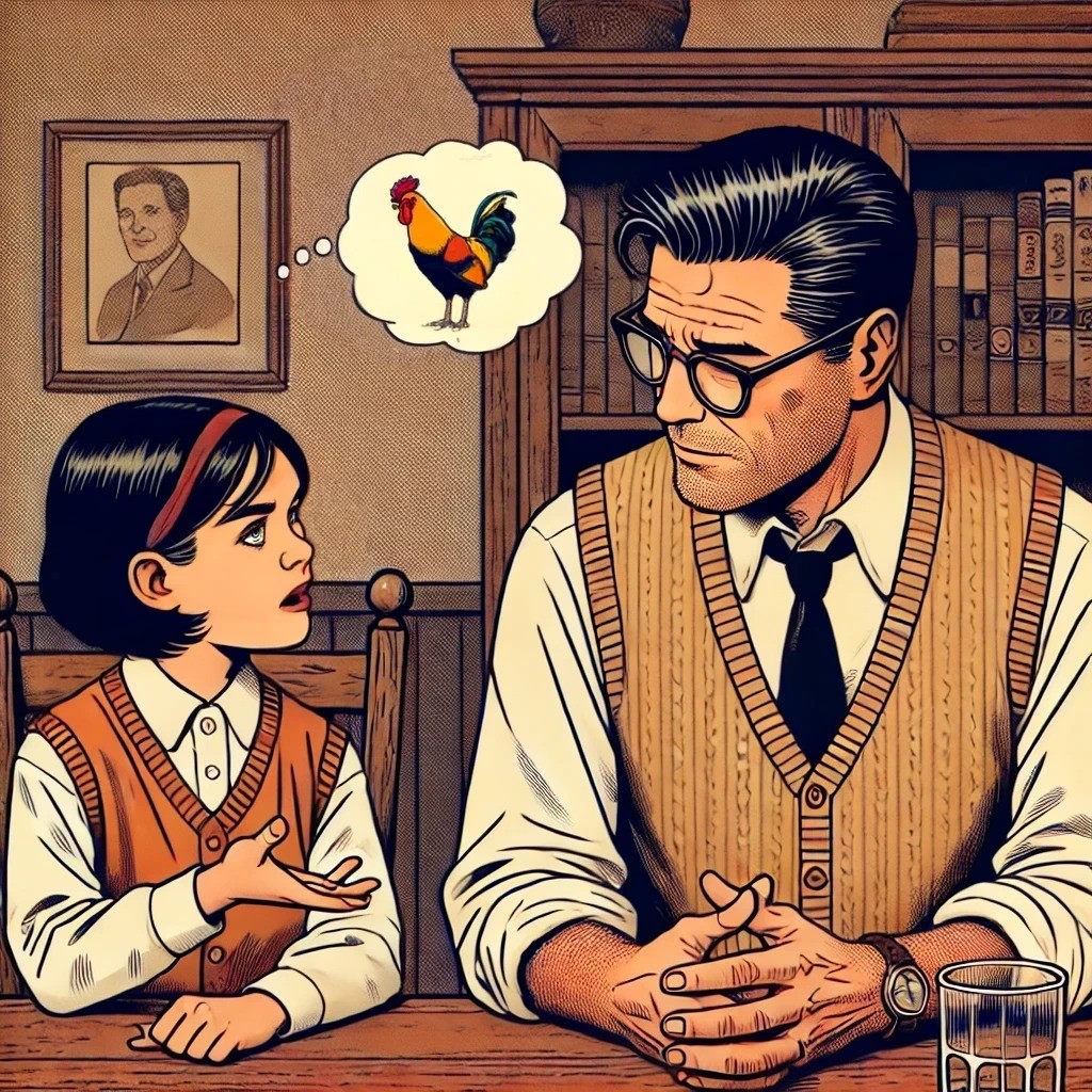 Ella dachte nach und rief dann triumphierend. : „ Aber das weiß ich doch ganz genau, dass Tiere denken können. Mein Hahn hat immer ganz genau verstanden was ich gesagt habe. Und er hat mir immer den richtigen Weg gezeigt, auch im Winter“.