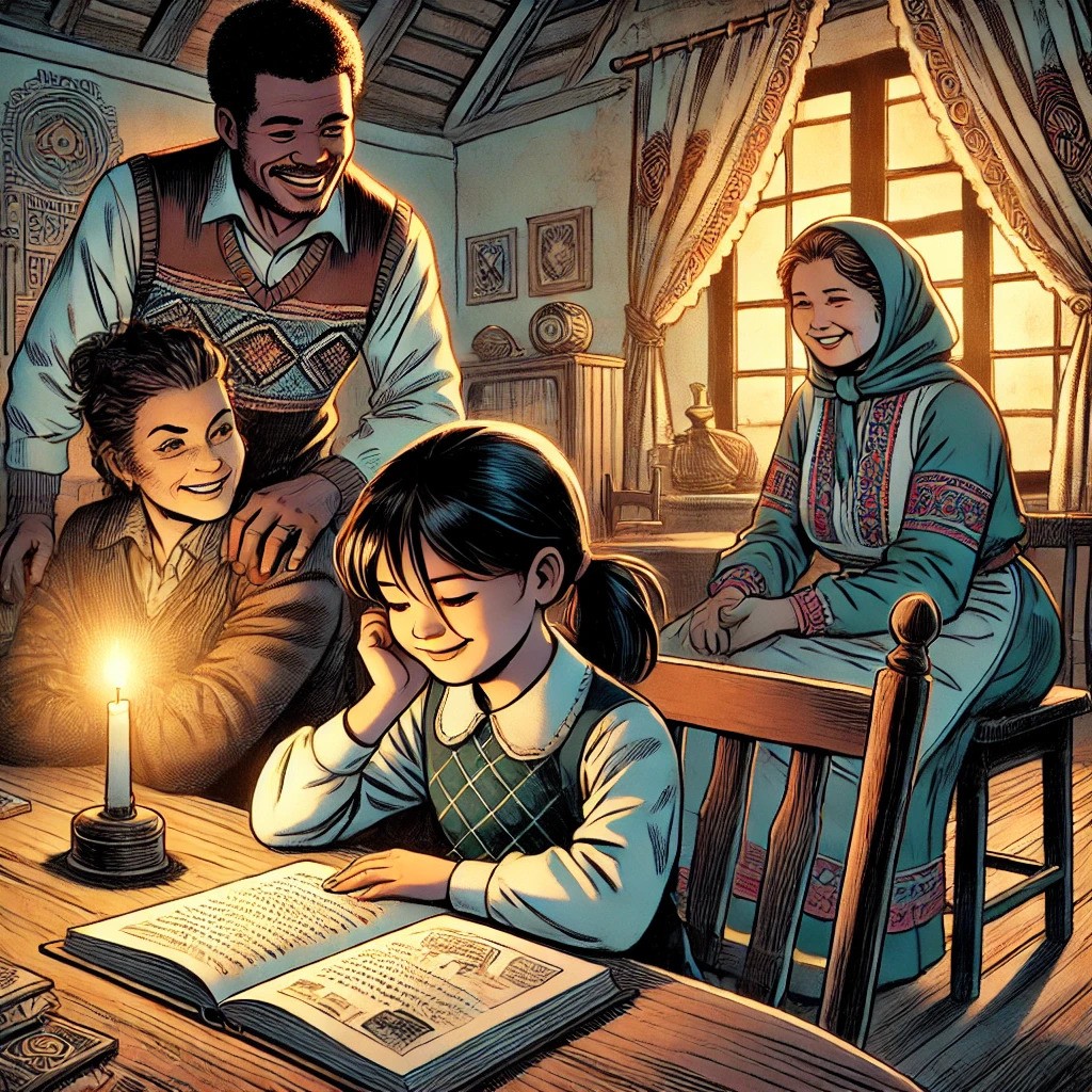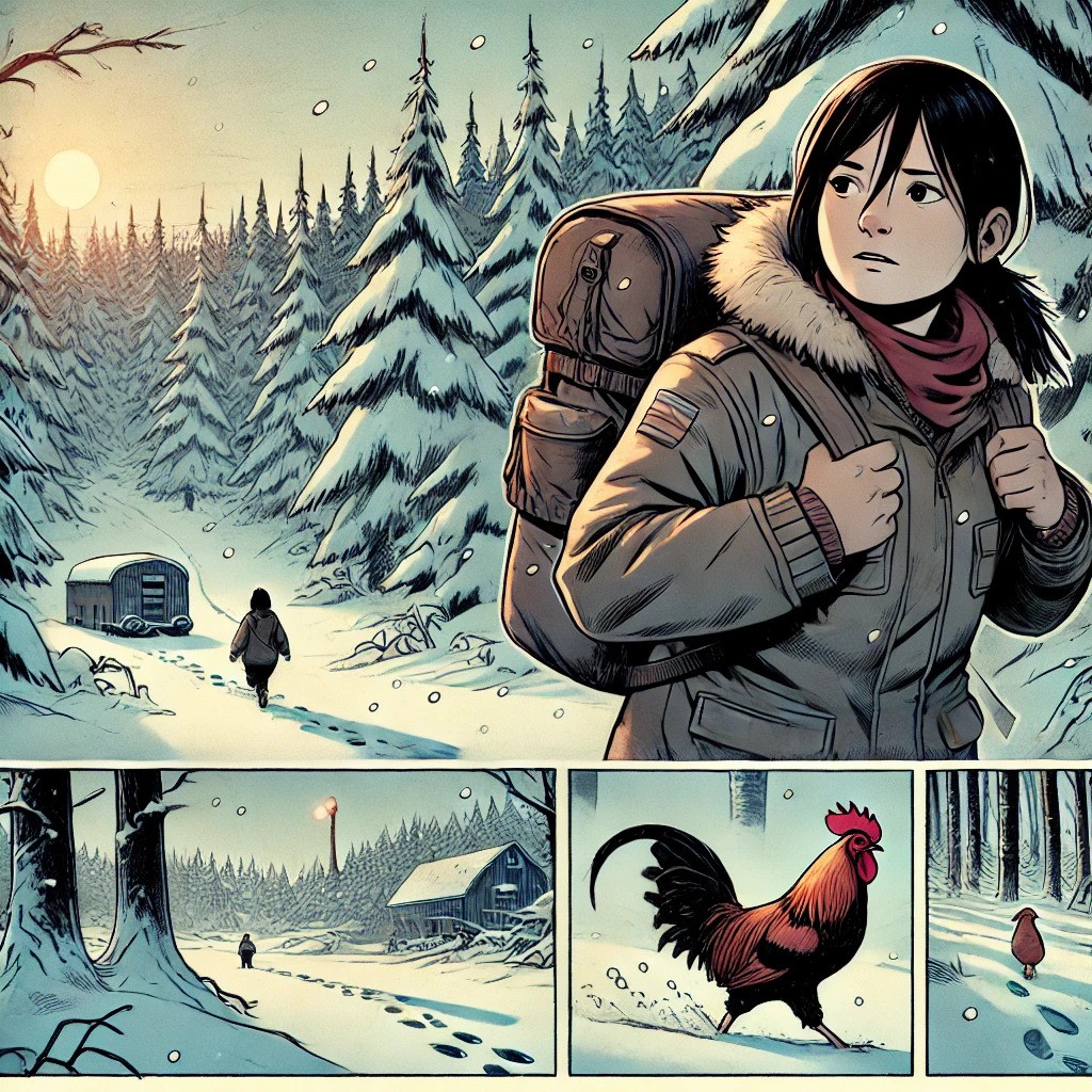 Mirela spürt den Drang, die Welt weiter zu erkunden. Nach all den wertvollen Dingen, die sie von der alten Frau gelernt hat – wo Beeren wachsen, wie man ein Schneehaus baut und wie man in der Natur überlebt – entscheidet sie sich, ihren eigenen Weg zu gehen. Es ist Weihnachtszeit. Nach über einem Jahr in der Hütte verabschiedet sie sich und macht sich auf den Weg durch den verschneiten Wald. Mit einem Rucksack auf dem Rücken und ihrem treuen Hahn, der darin mitreist, marschiert sie entschlossen voran. Nach einer langen Wanderung entdeckt sie ein großes, wunderschön erleuchtetes Haus. Durch die Fenster sieht sie viele lachende Kinder. Neugierig tritt sie ein und folgt den Kindern in ein Klassenzimmer. Doch kaum betritt sie den Raum, verstummt das Stimmengewirr für einen Moment – dann brechen die Kinder in staunendes Lachen, Rufe und aufgeregtes Durcheinander aus.