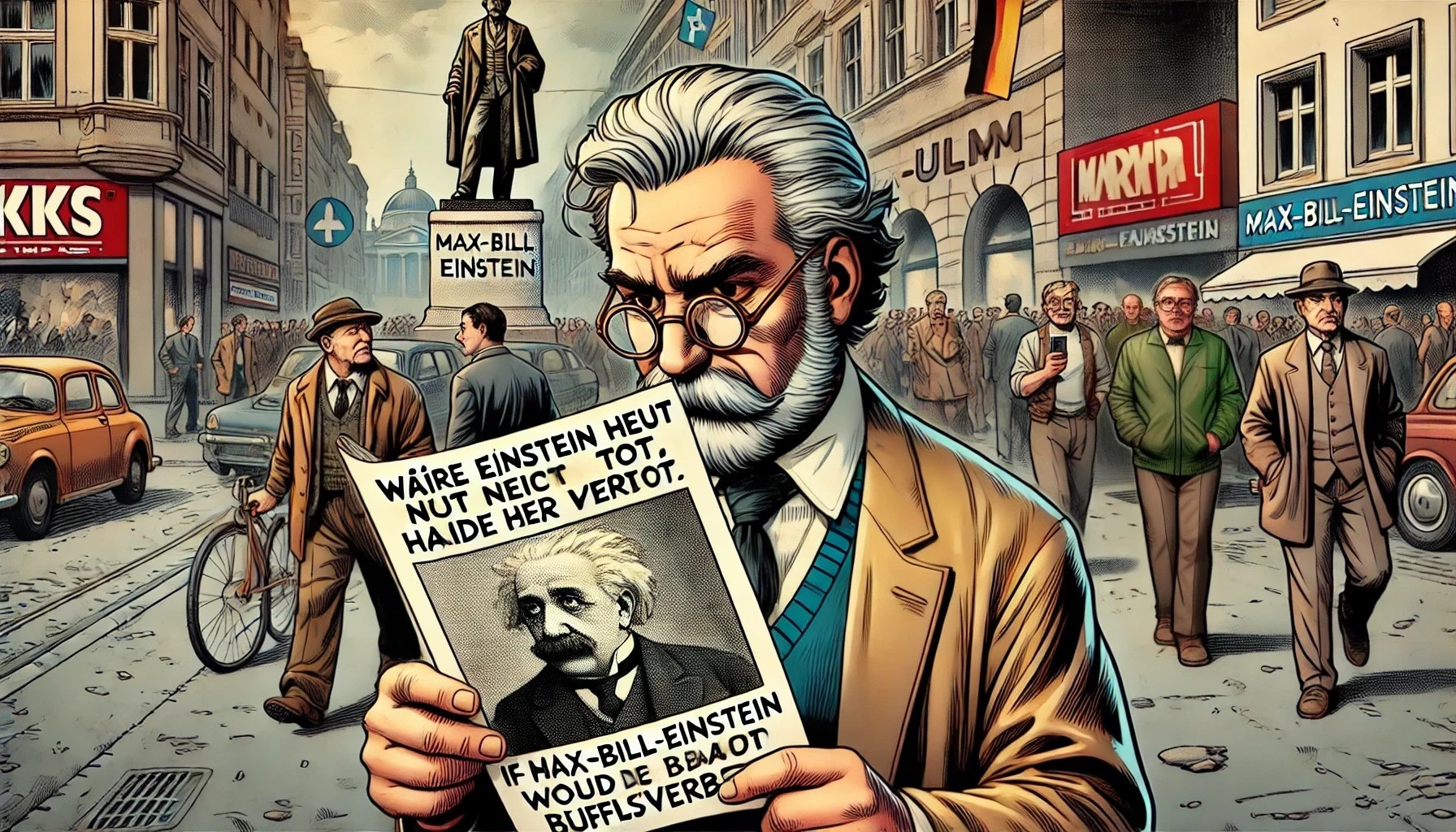 Interessanter Tausch, ein kleines Bild einer Denkmaleinweihung für Albert Einstein in Ulm, gegen ein Bild von Jean-Michel Basquiat,das